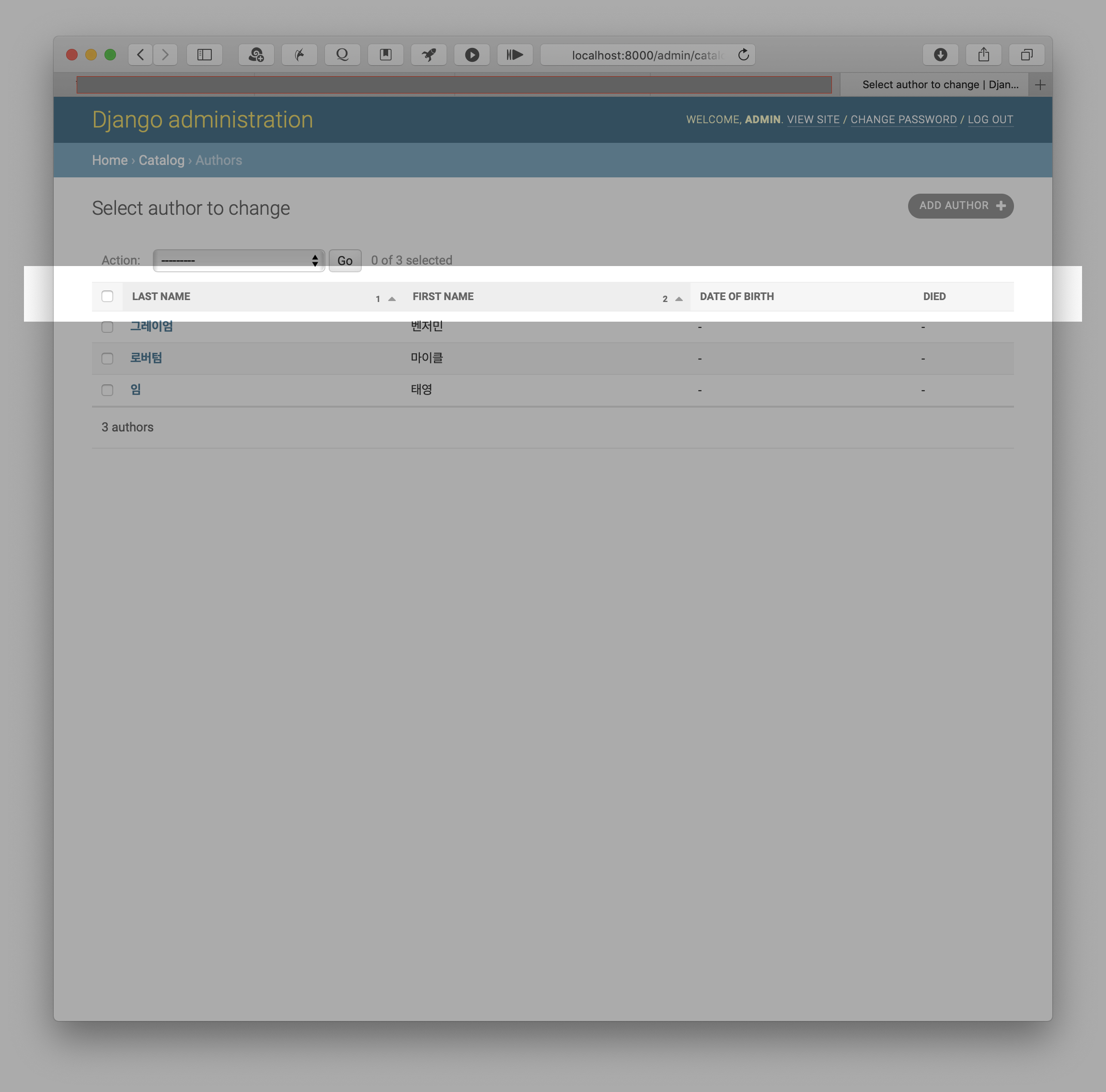 AuthorAdmin 클래스를 아래와 같이 편집하자.