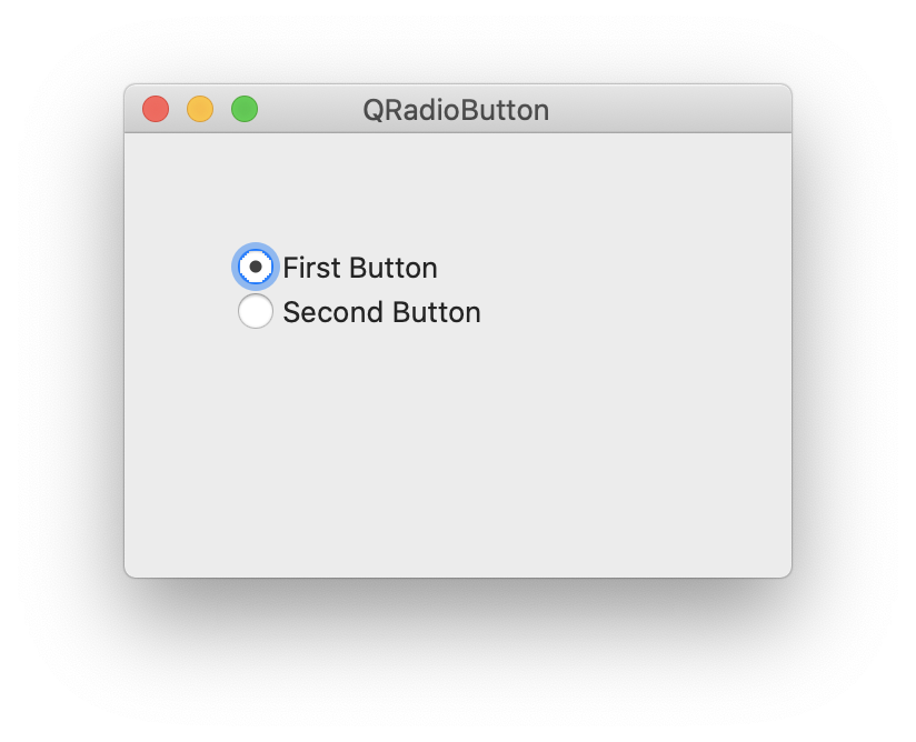 QRadioButton 위젯은 QCheckBox 위쳇과 달리 체크하는 곳이 동그란 모양인 위젯이다.이 버튼에도 QcheckBox과 마찬가지로 텍스트 라벨이 하나 포함된다.